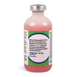 Triangle® Vaccine, Cattles Animal Type, 6 months Calves, Anystage of Gestation Pregnant Animals Life Stage, 20 mL Net Content, Solution Form, Pale Yellow to Reddish White, Composition: IBR, BVD Types 1 and 2, PI3 and BRSV Killed Viruses with Neomycin, Polymyxin B and Thimerosal Preservatives, 35 to 45 deg F, 6 to 8 pH pH
