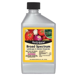 ferti-lome® Broad Spectrum Landscape and Garden Fungicide, 16 oz Net Content, Liquid Form, Light Gray, Slight Odor/Scent, Composition: Chlorothalonil, Density: 10.3 lb/gal, 1.24 Specific Gravity, 6 to 8 pH, 56 % VOC, Application Method: Spray, Additional Information:-5 deg C Freezing Point, 100 deg C Boiling Point