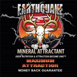 Our products include our flagship product EARTHQUAKE deer mineral and supplement Attractant that possesses the absolute highest level of nutrition and the lowest Salt/Sodium on the market. EARTHQUAKE only has between 21% and 24% Salt which is unheard of in the outdoors industry, as most other products contain well over 50% up to 90% Salt/Sodium. EARTHQUAKE is loaded with nutrition having over 21.5% Calcium, 3.7% Phosphorus and one the highest levels of Vitamin ADE on the market. EARTHQUAKE has been responsible for claiming several state Record Class bucks and thousands of personal trophies over the years from nearly every state in the us and Canada. When you use EARTHQUAKE, you are using a product that can help grow bigger deer with bigger racks, larger overall body mass as well as assisting does during their periods of gestation and lactation. EARTHQUAKE is also infused with a proprietary Deer Attractant that will attract deer from acres away and will do so year around. EARTHQUAKE is the perfect choice for growing and attracting WHITETAIL deer before, during and well after hunting season is long gone.