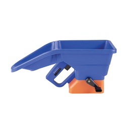 The jacto GM-3 has manual override through the side hand crank, allowing the operator to control the speed of distribution and range up to 12 ft, depending on the-type of the granule. Its dispersing disc was designed so that the distribution of the granules in the field is continuous and uniform.