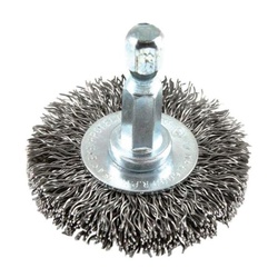 Designed for easy access into narrow holes and confined areas. Crimped style for light to medium-duty applications. Removes rust, scale and paint in hard to reach areas. For use with any 1/4 in Dia electric power drill or pneumatic (air) drills.