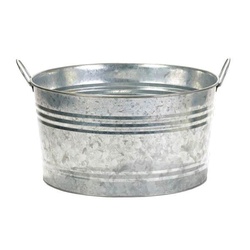 A Classic metal tub, perfect for stock feeding, watering and other farm uses. Heavy-duty galvanized construction prevents rust and corrosion. Features two-strong wire handles. 20 in Dia x 10-1/2 in H, holds 10.5 gal.