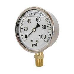 The Valley® Industries Universal 41 Series pressure gauge was designed to be used with applications that use gas, oil and water. Can handle up to 100 psi and available with a 1/4 in MNPT brass bottom-mount connection. Features a 2 in dial size that is built with an acrylic window and abs standard steel for increased durability. Grade B accuracy and fill made of glycerin for reducing shock by pressure fluctuations or vibrations. Compatible with Master Manufacturing and other branded sprayers.