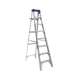 This Louisville® 8 ft lightweight aluminum step ladder has a load capacity of 250lb, rated ANSI Type I. This ladder is equipped with the innovative ProTop with a magnet and multiple tool slots, molded pail shelf, angled aluminum slip-resistant rubber feet, steel gusset bracing and pinch-resistant spreader braces. This ladder is ideal for painting. The Louisville® AS2108 step ladder meets or exceeds the safety standards set by ANSI and OSHA.