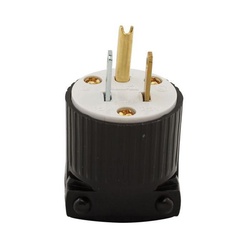 Arrow Hart Ultra Grip Straight Blade Plug, 125 VAC, 15 A, 2 Poles, 3 Wires, 0.33 to 0.66 in Cord Diameter, 18 to 12 AWG Conductor, Industrial Grade, NEMA Rating: NEMA 5-15P, Back Wired Terminal, Nylon Housing, Brass Blade, Black/White, 1.38 in Length, 1.38 in Width, 6-1/4 in Height, Additional Information: Screw Connection, Core Pack Packaging Type