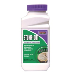 BONIDE Stump-Out® accelerates the decomposition of seasoned tree stumps to allow them to easily be burned out or chopped out of the ground. Works in 4 - 6 weeks.