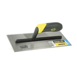Quality trowel measuring 11 x 4-1/2 in designed for the professional installer. Hardened and tempered steel blade, grounded and polished for long lasting durability. Aluminum die-cast shank and comfort grip handle.