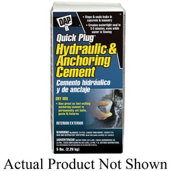 DAP® Quick Plug® hydraulic and anchoring cement is a versatile, high-performance patching compound, formulated to stop running water through deep cracks, holes and imperfections in concrete surfaces. When used properly, it creates a watertight seal in just 3 to 5 min. DAP® Quick Plug® works both above and below grade. It can also be used to anchor machinery and other fixtures into masonry and concrete surfaces.