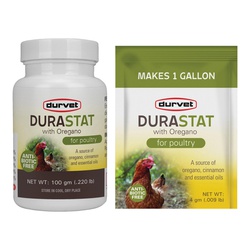 Durvet DuraStat with oregano is a source of energy and essential oils to stimulate water consumption and appetite during disease conditions, shipping, weather change or stress.