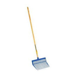 This is the original LITTLE GIANT® DuraFork bedding fork that is a fixture in stables and barns everywhere. Manufactured from extra strong 100% polycarbonate to provide super strength and flexibility. Designed for long-lasting use around the farm, ranch and home. Specially designed tines are uniquely angled to provide easy manure pickup with less spilling. Nylon locknut secures the 52 in L x 1-1/8 in dia hardwood handle. Fork head is 13-1/8 in L x 15-1/8 in wide. Blue fork head.
