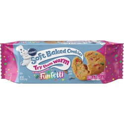 Pillsbury™ soft baked confetti cookies are made with a blend of butter and shortening for the perfect soft baked texture. All the flavor and goodness you expect from Pillsbury™ cookie dough in a ready to eat cookie. These cookies are the perfect lunchbox treat or after school snack your whole family will enjoy. Enjoy your favorite Pillsbury™ flavors without turning on the oven. These ready to eat cookies are the perfect on-the-go treats or afternoon snack for your family. Try all Pillsbury™ soft baked cookies including chocolate chip, confetti, butterscotch and chocolate, drizzle sugar and peanut butter with chocolate drizzle.