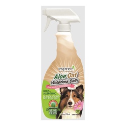 The perfect quick clean waterless bath for pets with sensitive skin or allergies. This skin-soothing and cooling bath keeps dogs fresh and clean between visits to the groomer. Great for cleaning faces and paws. Hydrolyzed oat protein is added to our organic aloe vera solution for its powerful skin-soothing qualities. A perfect grooming aid for ill or elderly pets to prevent added bath time stress. A quick spray and towel dry will keep pets looking freshly groomed as well as itch and odor-free.