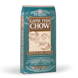 Complete and balanced 32% protein, extruded, multi-particle size product designed to be fed to a wide variety of fish species and wide range of sizes of fish. Purina® Game Fish Chow® feed is rich in nutrients essential for optimal fish growth, reproduction and overall health. It works naturally with everyday food sources in your water to address poor nutrition, which is the most significant limiting factor in the size and health of forage fish.
