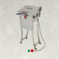 Perfectly fry fish, shrimp, chicken, fries, hushpuppies and onion rings with this innovative 2.5 gal stainless outdoor fryer. A fryer that heats from the "inside out", not the bottom, so cooking oil stays clean and food always tastes great. Heating from the "inside out", a horizontally mounted rear jet burner blasts intense hot air through inner vent tubing under the oil, then exits safely through a rear exterior vertical exhaust. Heat transfers through the metal tubing into the oil. The fryer V-bottom collects loose batter below the heat source to prevent scorching. Cooking oil stays cleaner and lasts much longer. Stainless construction and bottom drain valve provide easy clean-up. Make your backyard a wild life refuge for food, fun and fellowship with a BAYOU CLASSIC® 2.5 gal fryer.